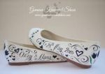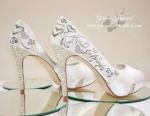 Next – what colour and style? Do you match your dress (there are around 80 different shades of white and ivory so not an easy task but if you can’t really see them or they’re strappy you won’t really notice!) or go for something a little wild and wacky? If you have a lace dress do you want a lace shoe? What about if you’ve got a tea-dress? That requires something special – a shoe you can see is not just a shoe, it’s part of your outfit.